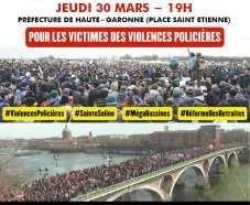 En soutien aux 2 manifestants dans le coma, aux blessé.es de Sainte-Soline et du mouvement des retraites, pour la fin des violences policières.