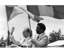 7 octobre 1982, François Mitterrand et son homologue rwandais Juvenal Habyarimana saluent la foule