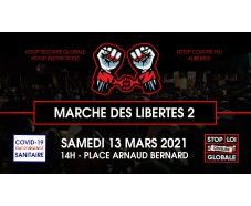 Marche des libertés à Toulouse le 13 mars 2021, 14 heures, Place Arnaud Bernard