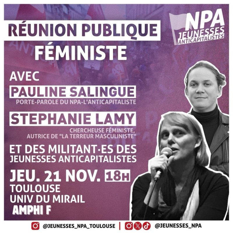 Face à l’ampleur des violences sexistes, de la domination sociale, économique des femmes, nous devons nous mobiliser. A l4occasion du 25 novembre, journée de lutte contre les violences faites aux femmes et aux minorités de genre, nous serons dans la rue pour lutter contre ce système capitaliste et patriarcal qui nous opprime, qui violente et qui assassine !