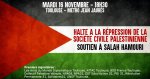Nous vous invitons à nous rejoindre pour dénoncer les récentes décisions des autorités israéliennes : Le 18 octobre, Israël annonce la révocation du statut de résident de Jérusalem du Franco Palestinien Salah Hamouri, un des principaux avocats de l’ONG Addameer, qui défend les prisonniers palestiniens en Israël. Le 19 octobre, six ONG palestiniennes - Addameer, Al-Haq, le Centre Bisan, Défense (…) -
