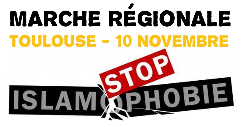 Le 1er novembre est paru une tribune dans Libération pour dire STOP à l’islamophobie appelant à une Marche nationale le dimanche 10 novembre à Paris (reproduite ci-dessous). Nous, organisations toulousaines du mouvement social et antiraciste, reprenons cet appel et appelons à notre tour à une Marche régionale à Toulouse le même jour, à 15h, au départ du métro Jean Jaurès.