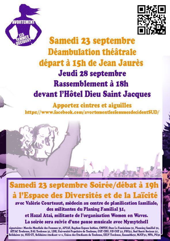 11 septembre 2017Le Collectif de défense de l’IVG dans la Haute-Garonne organise trois actions en écho à l’appel européen en faveur du droit à l’avortement :