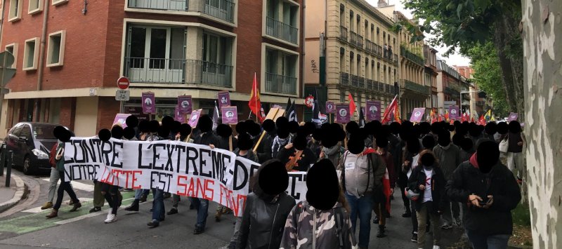 7 juin 2019Ce mercredi 5 juin, nous étions plus de 300 à manifester contre l’extrême droite à Toulouse, parce que nous ne laisserons jamais les organisations d’extrême droite, nationalistes et réactionnaires, tenter d’imposer leurs idées au reste de la société sans rien faire.