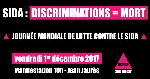 Séropos, trans, pédés, biEs, gouines, putes, inters, sans papiers, tox, migrantEs, personnes racisées, précaires, séronegs, hétéros, restons solidaires et mobiliséEs contre les discriminations, vecteurs de l’épidémie !
