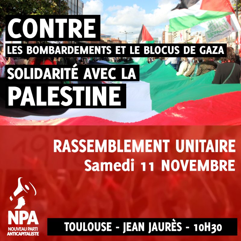 Nous appelons à nous rassembler sur les bases de cet appel et à organiser, en solidarité avec le peuple palestinien, des marches contre la guerre partout en France ce week-end.