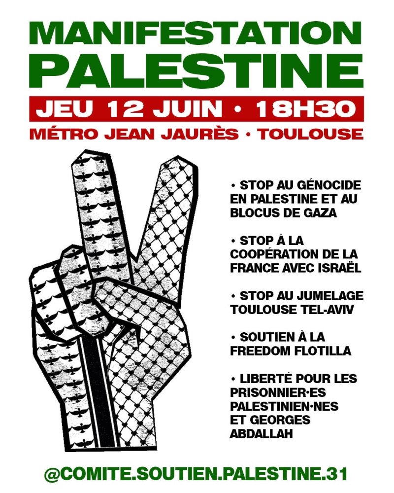 60 organisations toulousaines appellent à manifester contre la dissolution du Collectif Palestine Vaincra