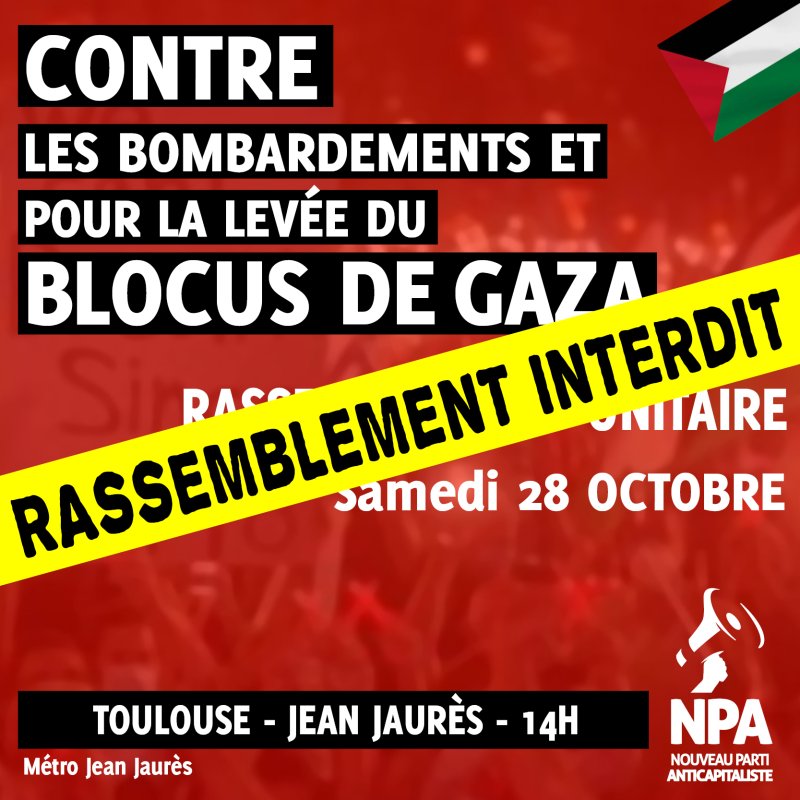Premiers signataires : AFPS, ATTAC, GES, La France Insoumise, La Libre Pensée, Mouvement de la Paix, NPA, PCOF, POI, Solidarité Palestine Toulouse, Union des Etudiant.e.s de Toulouse, Union Juive Française pour la Paix…