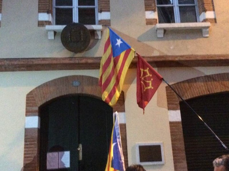 Même jour et même heure qu’à Barcelone, sous un temps pluvieux, la manifestation appelée par le Parti Occitan et l’association La Veu dels Països Catalans a rassemblé près de 80 personnes, dont des familles et le conseiller régional Gérard Onesta, au monument aux morts puis devant le consulat de l’État espagnol.