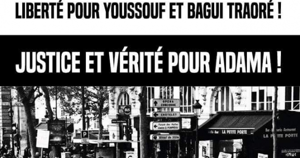 Nous ne reculerons pas sur notre revendication principale, qui est la mise en examen des gendarmes, pour la justice et la vérité pour Adama. Il est certain désormais que notre mobilisation et nos prises de décisions mettent ces institutions en difficulté, d’où cette obstination à vouloir condamner une famille toujours en deuil, en brisant leur cellule familiale. Adama a été tué le 19 juillet lors de son interpellation par les gendarmes de Beaumont sur Oise et nous devons encore nous battre pour obtenir leur mise en détention. Aujourd’hui, Youssouf et Bagui passent leur première nuit en prison.