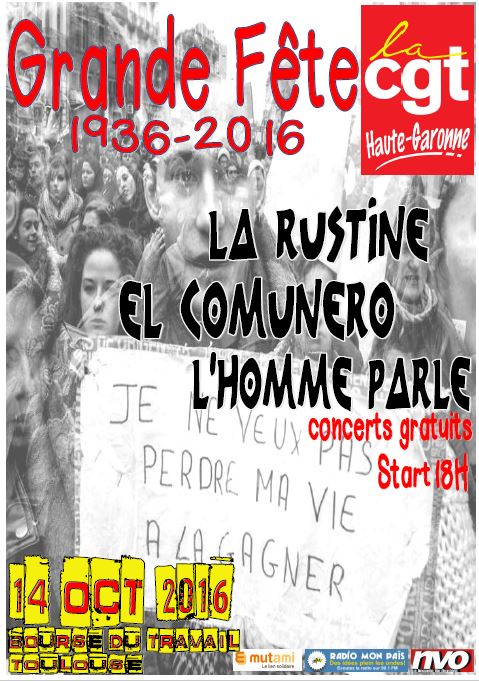 à la Bourse du Travail (Place Saint Sernin) dès 18h - Concert gratuit (La Rustine – El Comunero – L’Homme parle)