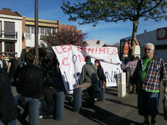 Le cortège de quartier était jeune et dynamique et a défilé derrière une banderole intitulée « Les Minimes contre la loi Travail ! » avec un très bon accueil des passants. Les slogans étaient les suivants :