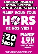 20 novembre 2015HOMOPHOBIE, LESBOPHOBIE, BIPHOBIE, TRANSPHOBIE : ON NE SE LAISSE PAS FAIRE ! « LA MANIF POUR TOUS » HORS DE NOS VIES !
